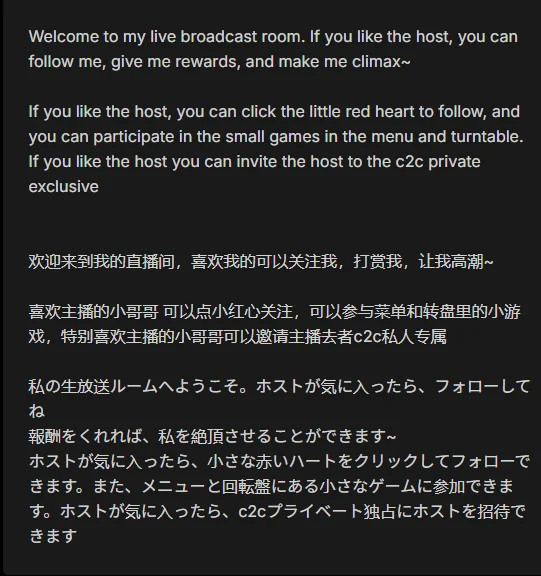 ホストが気に入ったら、小さな赤いハートをクリックし てフォローできます。また、メニューと回転盤にある小さなゲームに参加できます。ホストが気に入ったら、c2cプライベート独占にホストを招待できます