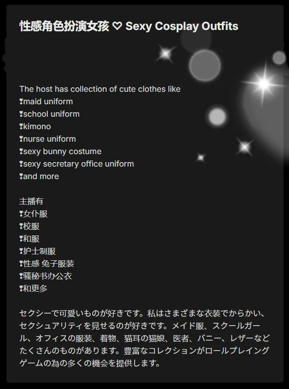 Vocal english dirtytalks and ASMR are available in pvt/c2c chat ^^. I have cute and captivating voice~